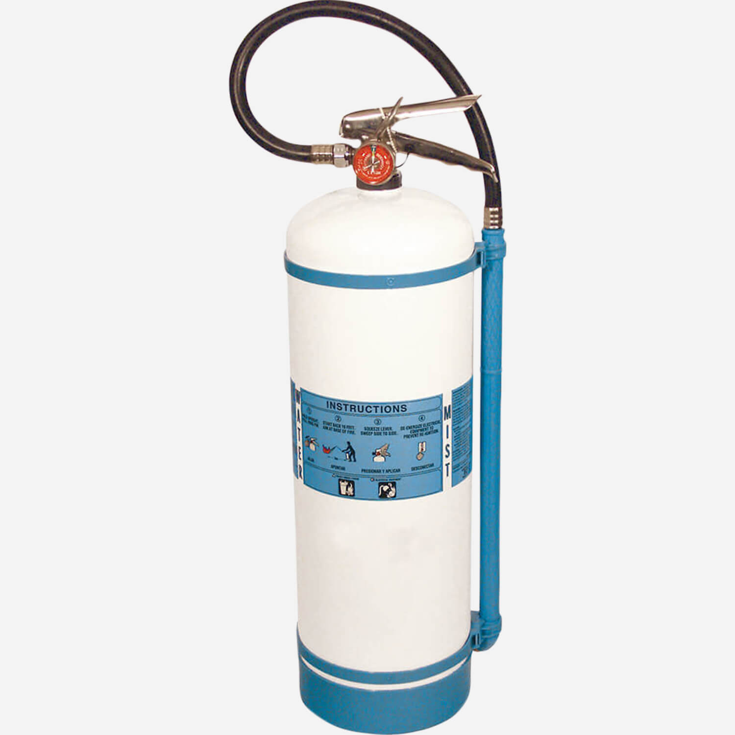 This fire extinguisher features non-magnetic construction with white sanitary easy-to-clean paint making it ideal for use in MRI facilities. The misting nozzle makes it safe to use around electrical equipment. Stored pressure design contains non-toxic de-ionized water (by others) making it the best choice for hospitals and sensitive documents. 1.75 Gallon (6.6 Liter) (Model 3270) and 2.5 Gallon (9.4 Liter) (Model 3272) extinguishers are available.
