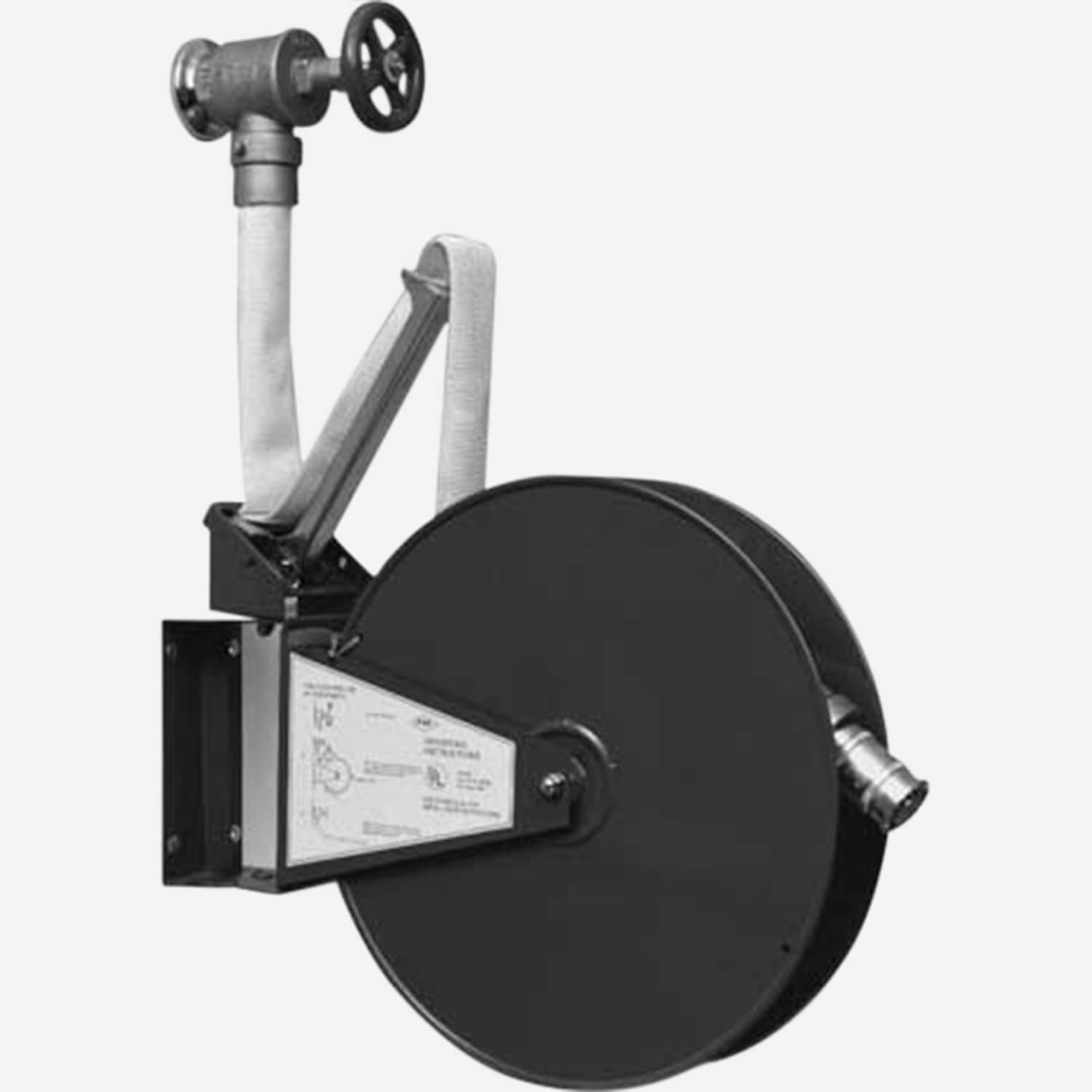 This hose reel assembly is used to provide an immediate and more efficient means of fire control. It enables single person operation and meets the nationally recognized standard of 100 GPM (378.5 lpm) at 65 PSI (4.5 bars) at the outlet of the valve. Includes a reel manufactured of 20 gauge galvannealed steel with 12 gauge galvannealed steel wall bracket and a red powder coated electrostatically applied finish.