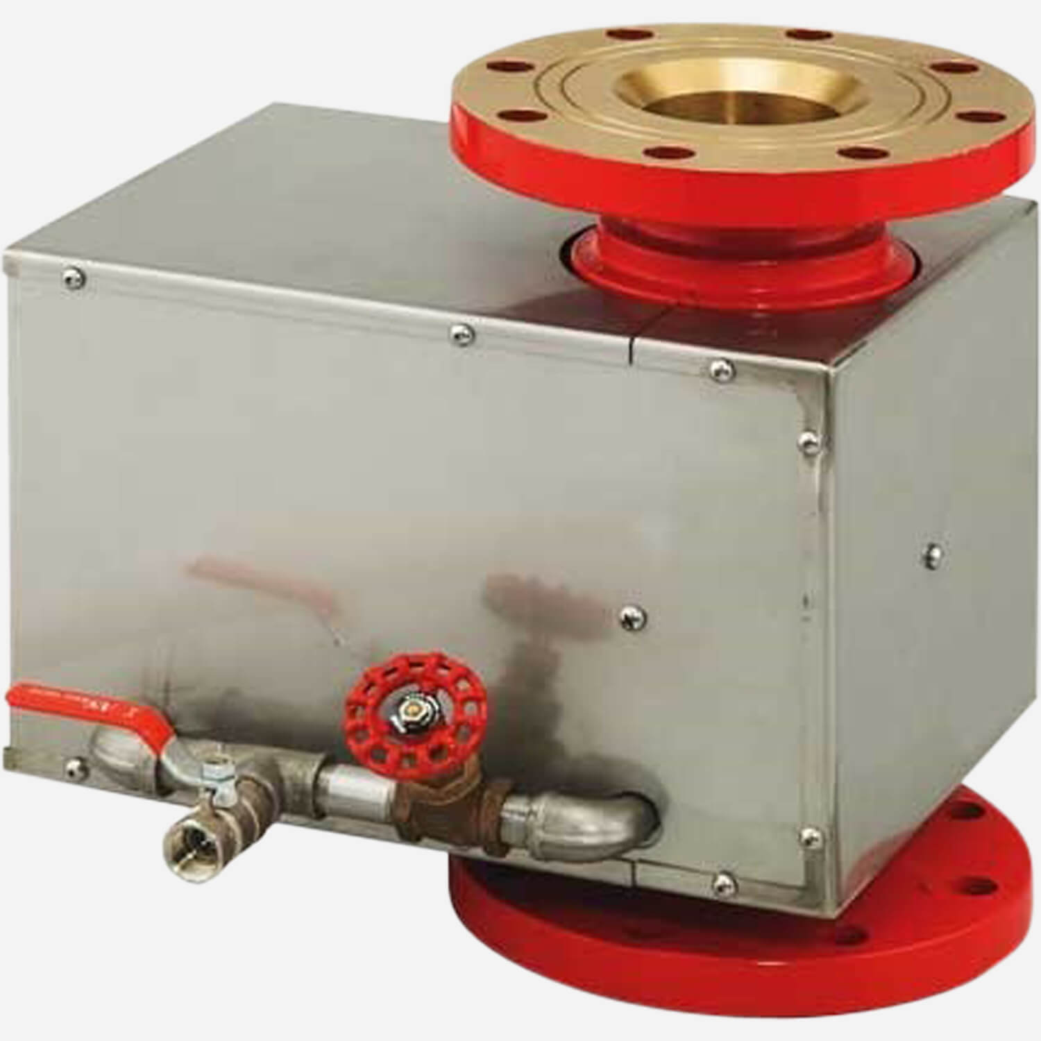 This oscillating single-waterway fire monitor is used in areas requiring monitors capable of automatic continuous and wide area coverage. The single-waterway monitor has a red epoxy finish inside and out and features water-driven oscillation with a test connection and override to permit manual operation. It has an 180° horizontal oscillation cycle adjustable from 10 to 30 seconds. Model 6421 is rated for 750 GPM and has a 2.5” seamless waterway. Model 6422 is rated for 1200 GPM and has a 3” welded waterway. Inlets are available in 2.5” male and female; 3” male female and flange; and 4” flange sizes and types.