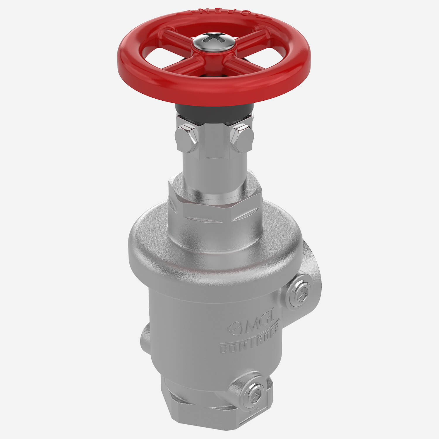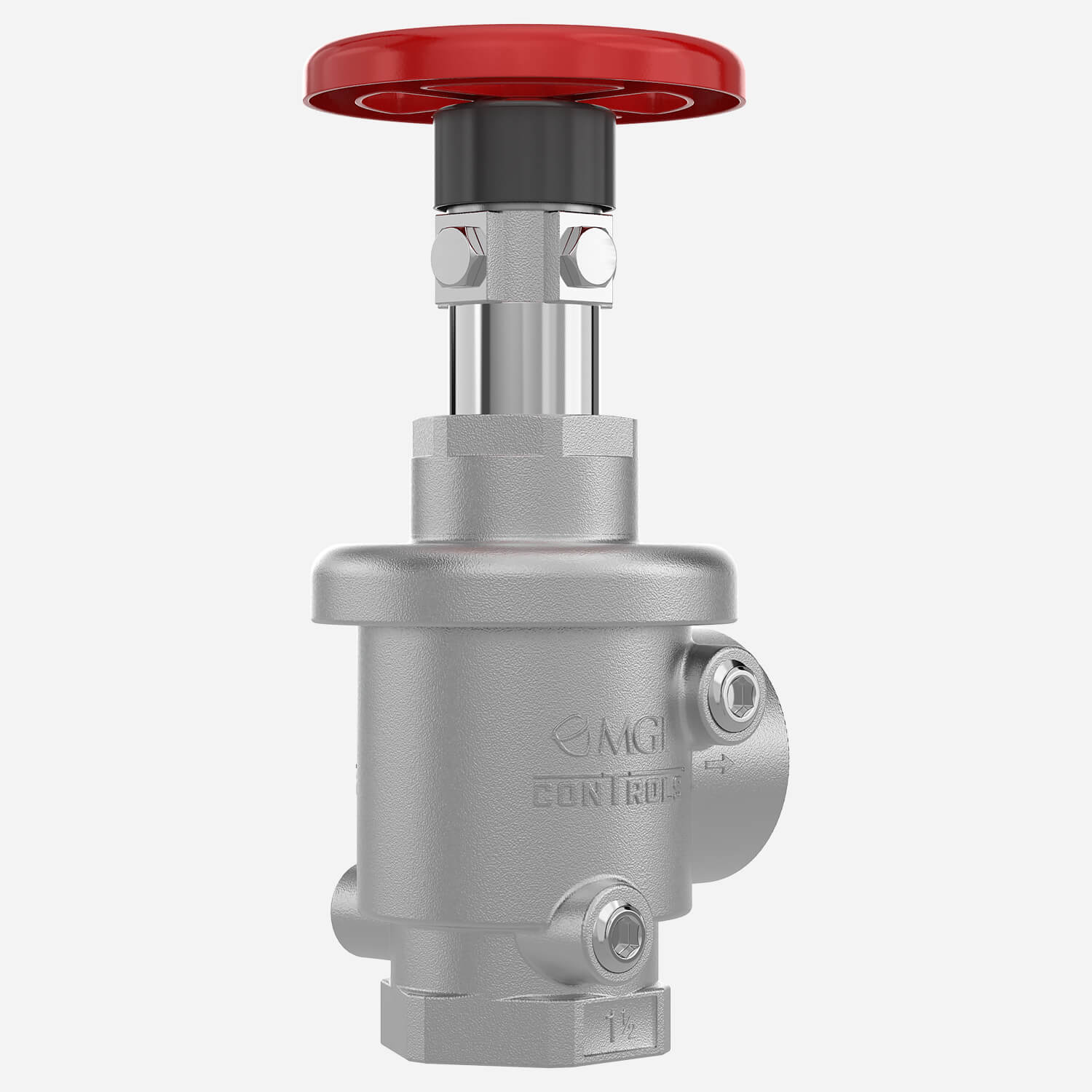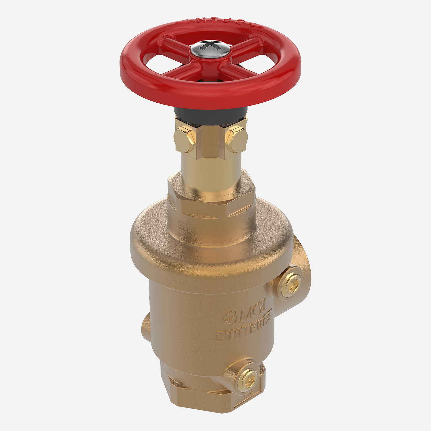 MODEL 4042-FS2 Cast bronze valve with rising stem, internal parts of brass, and chrome silicon. Red aluminum handwheel. Regulates pressure under both flow and no-flow conditions. Female 1-1/2" N.P.T. inlet and outlet.