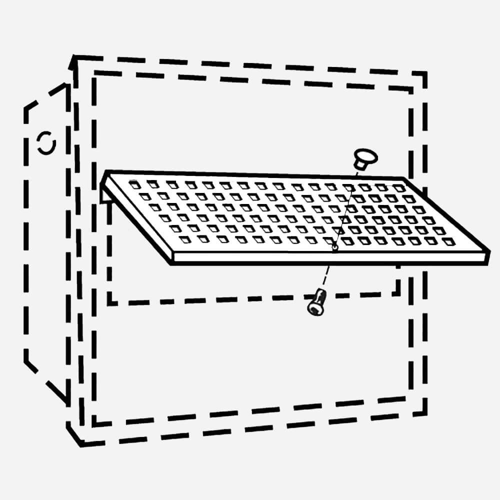 This metal flap protects the glass on break glass cabinets in gymnasiums. It has a hinge and pull knob. Model 1923 is for a 24”/61 cm Wide Door and Model 1924 is for a 30”/76.2 cm Wide Door.