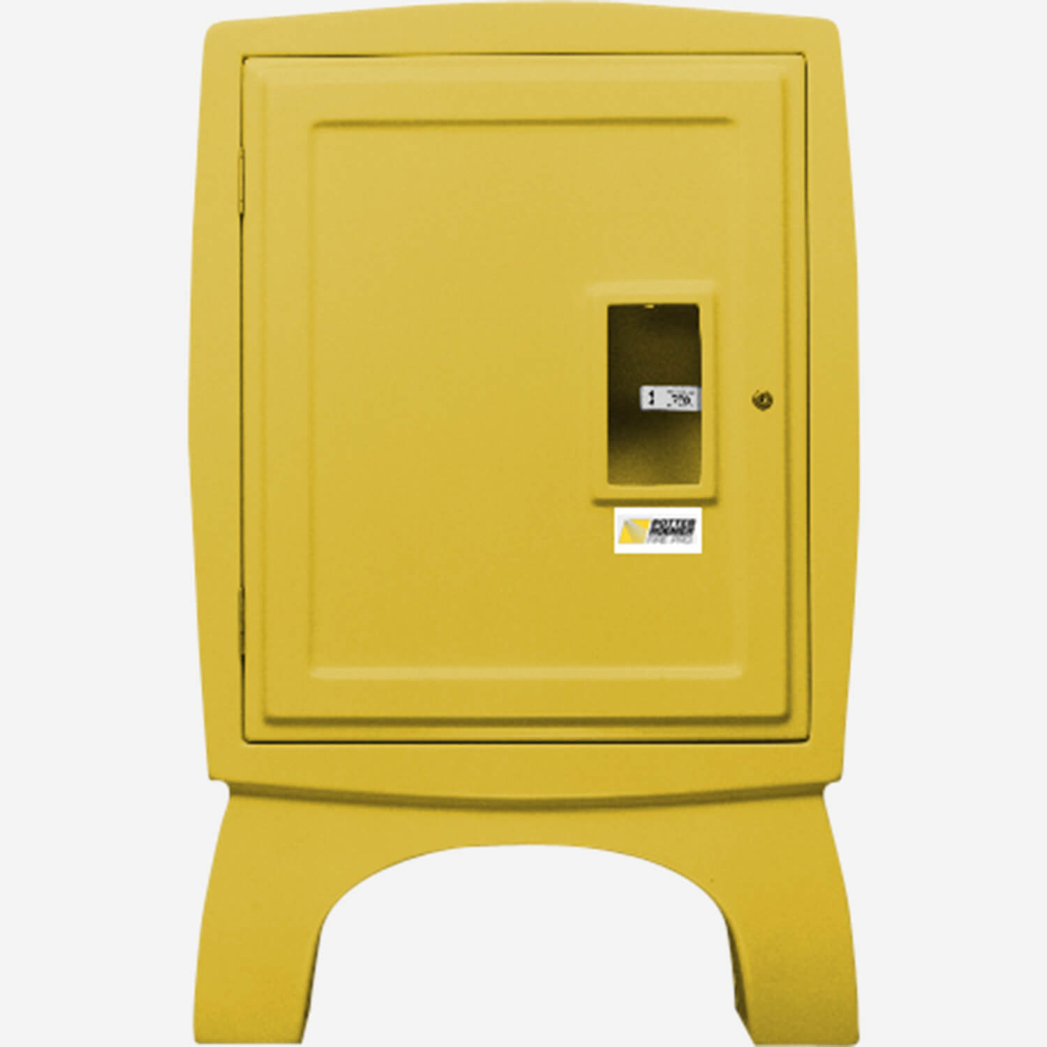 Potter Roemer provides this cabinet to house a fire hose and extinguisher. It is fabricated of fiberglass which is ideal for use in corrosive environments. This cabinet accommodates a single 1-1/2” (3.8 cm) fire hose rack assembly and a portable fire extinguisher. It is a yellow fiberglass free-standing cabinet with break glass door keyed-alike cylinder lock with internal trip device clear tempered safety glass with Break Rite™ handle and instructional lettering.